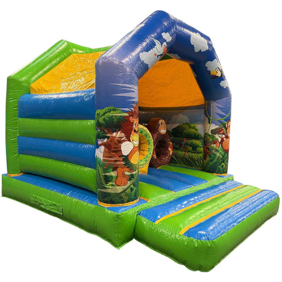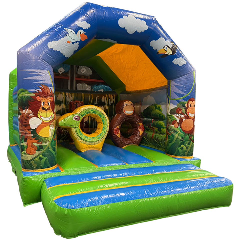 Unsere Hüpfburg Aframe Midi Dschungel mit Hindernissen ist die ideale Wahl für alle, die vielseitige und kompakte Hüpfburgen suchen. Diese Hüpfburgen bieten sowohl viel Spaß als auch optimale Sicherheit. Sie eignen sich perfekt für kleinere Veranstaltungen wie Geburtstagsfeiern, Kinderbetreuung und Familientreffen. Das clevere Design vereint verschiedene Spielelemente in einer kompakten Struktur.